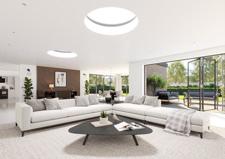 Brett Martin Circular Glass rooflight to suit a builders timber kerb is a premium round rooflight specified for its distinct styling. This contemporary glazing unit gives a clean internal appearance, a minimal unobtrusive exterior and allows daylight to spread evenly through an interior space.
