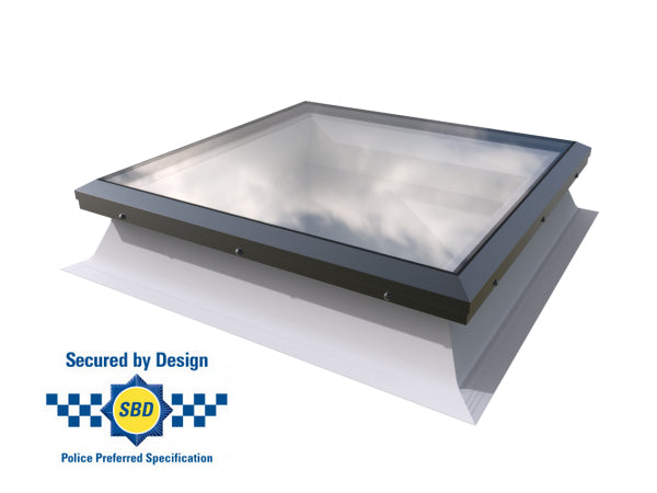 Brett Martin Flat Glass fixed rooflight with 150mm high splayed PVC kerb. Beautifully designed contemporary double glazed laminated glass rooflight supplied with a PVC kerb for direct fitting to the roof deck.