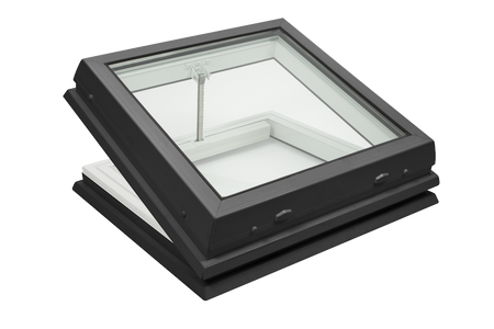 Lunaglaze Grey Electric Hinged Glass Rooflight to Suit a Builders Kerb