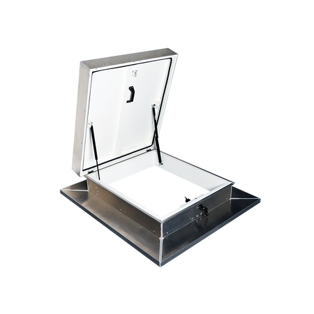 Thermadome Commercial Access hatch units are supplied with 232mm high aluminium upstand and aluminium flashing fitting to a builders kerb. Polyester powder coated white internally as standard. Insulated externally with rockwool insulation giving exceptionally robust and thermally efficient performance.