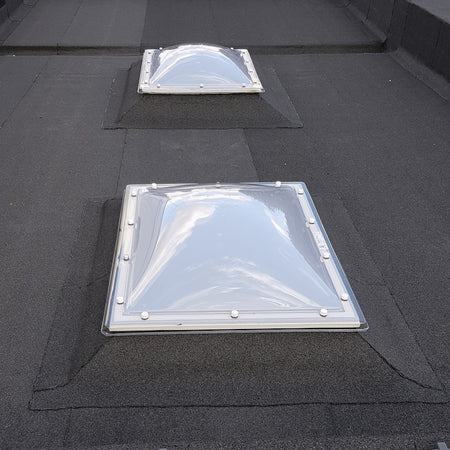 Thermadome rooflights are manufactured from high quality polycarbonate with insulated PVC kerbs suitable for fitting directly to the roof deck. They are designed to make optimum use of natural light and are offered in a wide range of sizes. They are not ventilated to provide a cost effective natural light solution. This means that our domes are expected to exceed the natural light of the roof covering (felt / single ply etc) and will not be effected by any atmospheric pollution that occurs nor rust through the products lifetime. All of our products come with full manufacturer guarantee's for extra peace of mind, ensuring against any defective design.